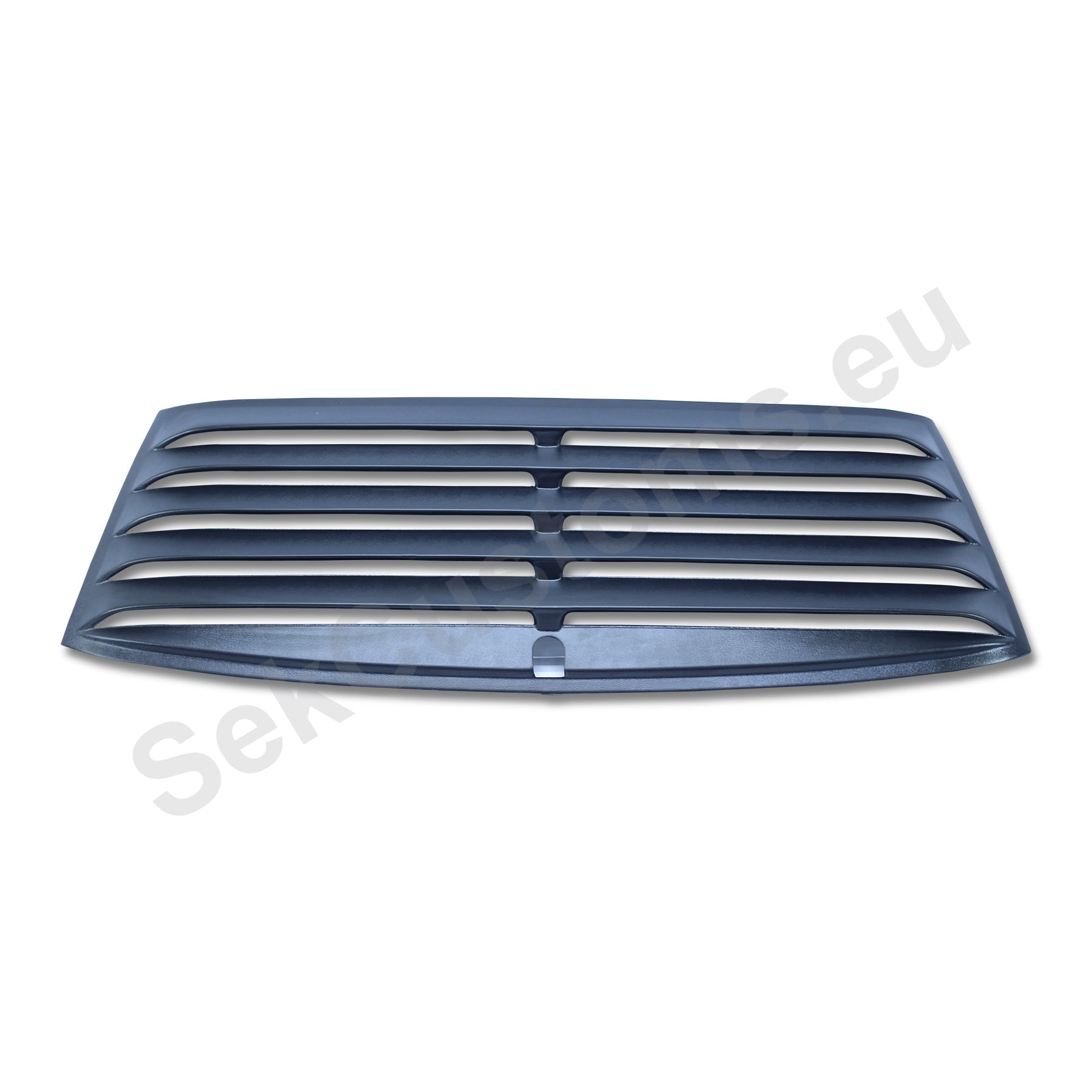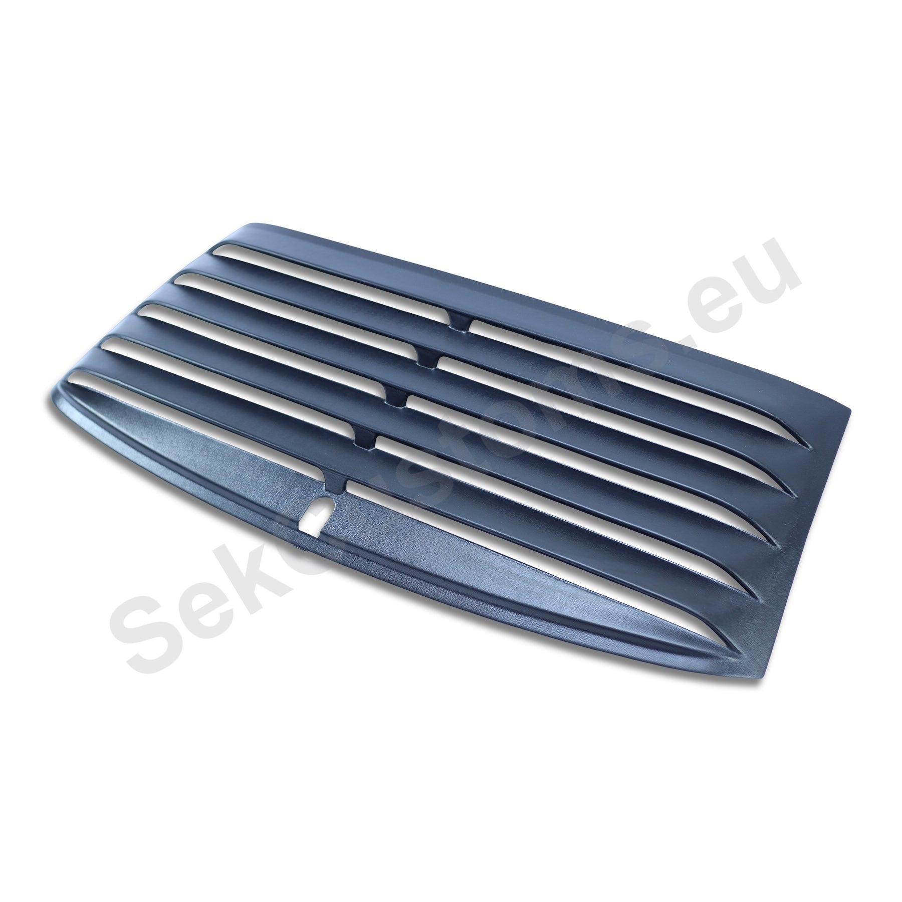 The window grille is precisely shaped to replicate the contours and dimensions of the rear window's edges. The edges of the louver align perfectly with the rubber trim of the window, providing a neat and completed finish. This rear window detail highlights and emphasizes the vehicle's lines.