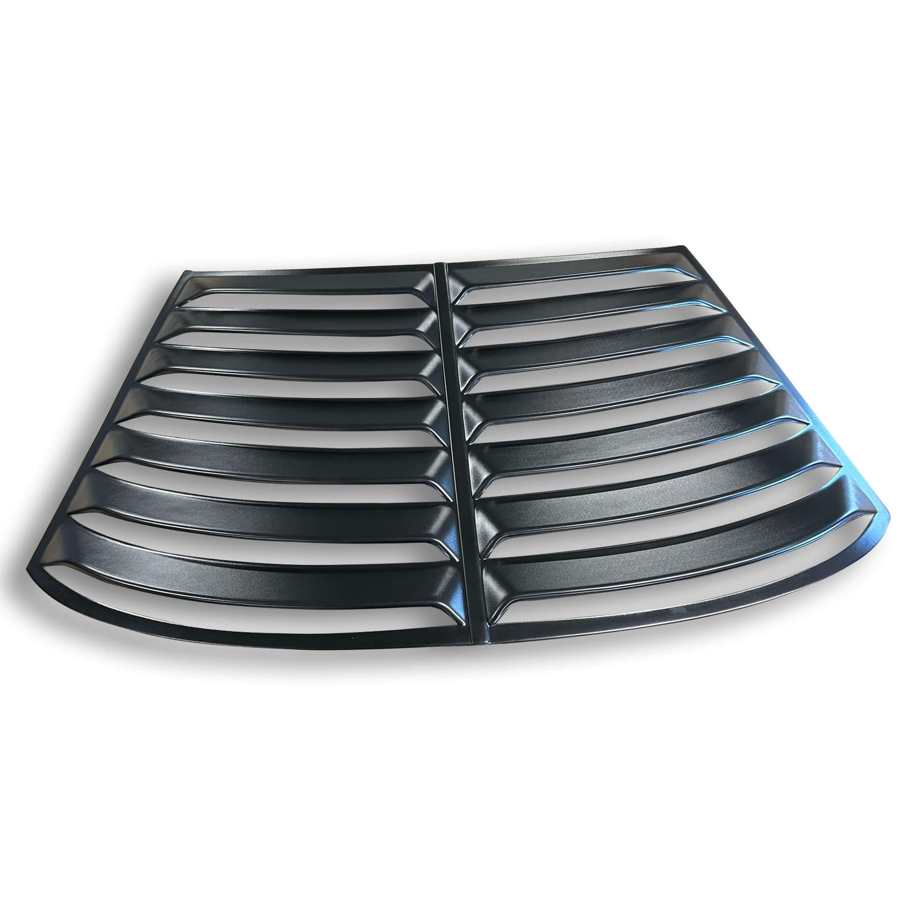 The window grille is precisely shaped to replicate the contours and dimensions of the rear window's edges. The edges of the louver align perfectly with the rubber trim of the window, providing a neat and completed finish. This rear window detail highlights and emphasizes the vehicle's lines.
