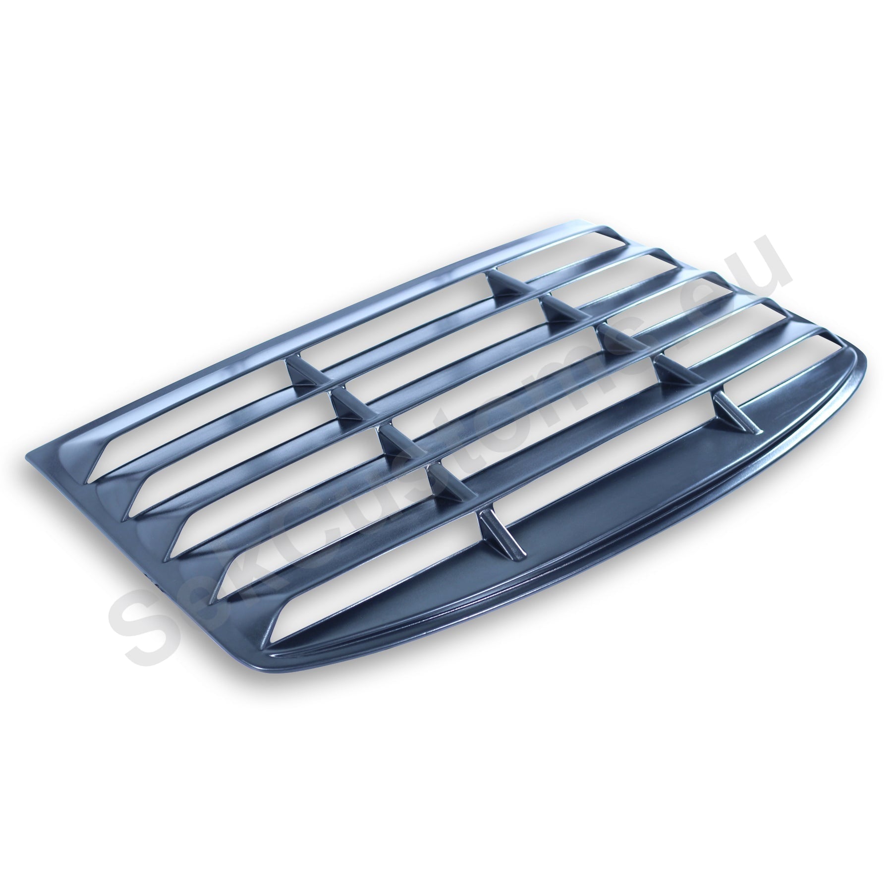 The window grille is precisely shaped to replicate the contours and dimensions of the rear window's edges. The edges of the louver align perfectly with the rubber trim of the window, providing a neat and completed finish. This rear window detail highlights and emphasizes the vehicle's lines.