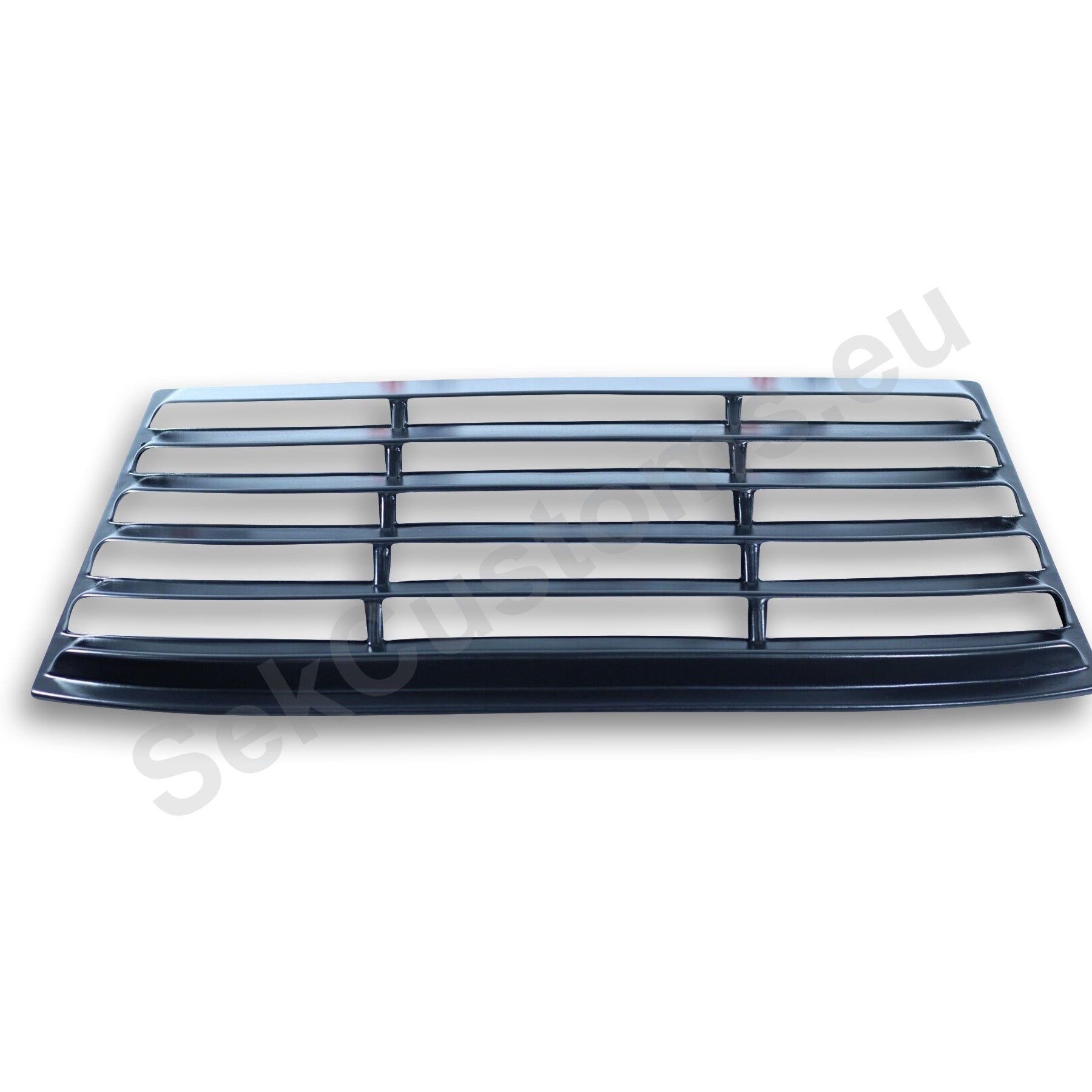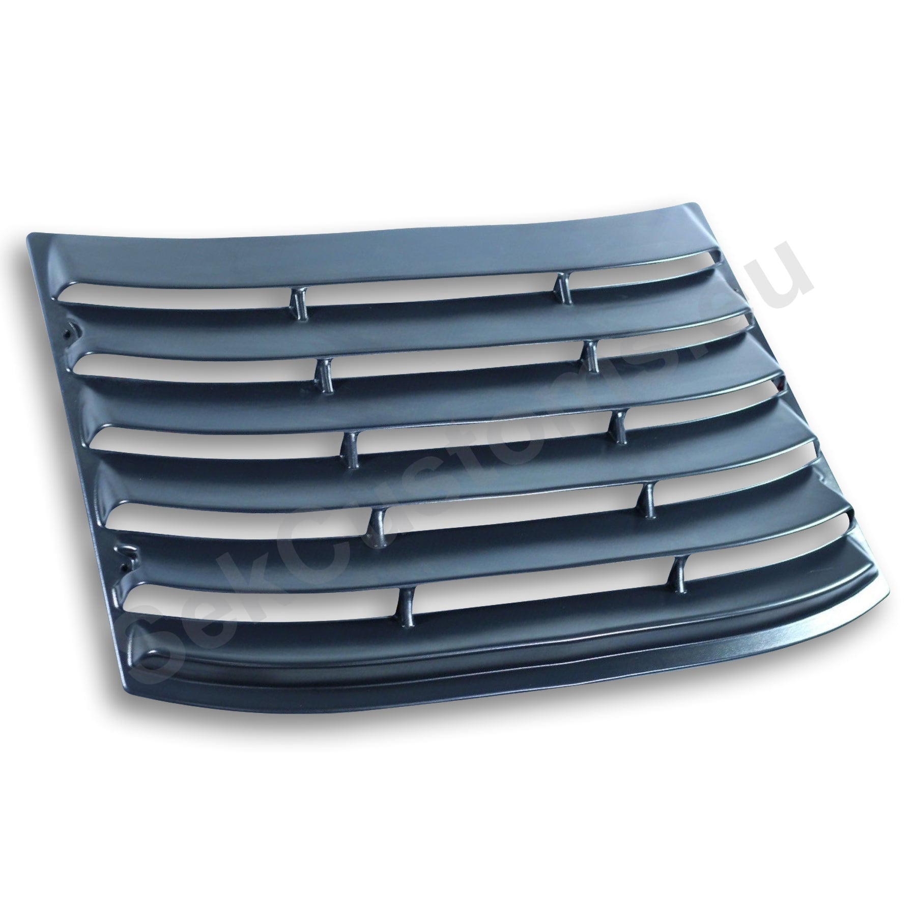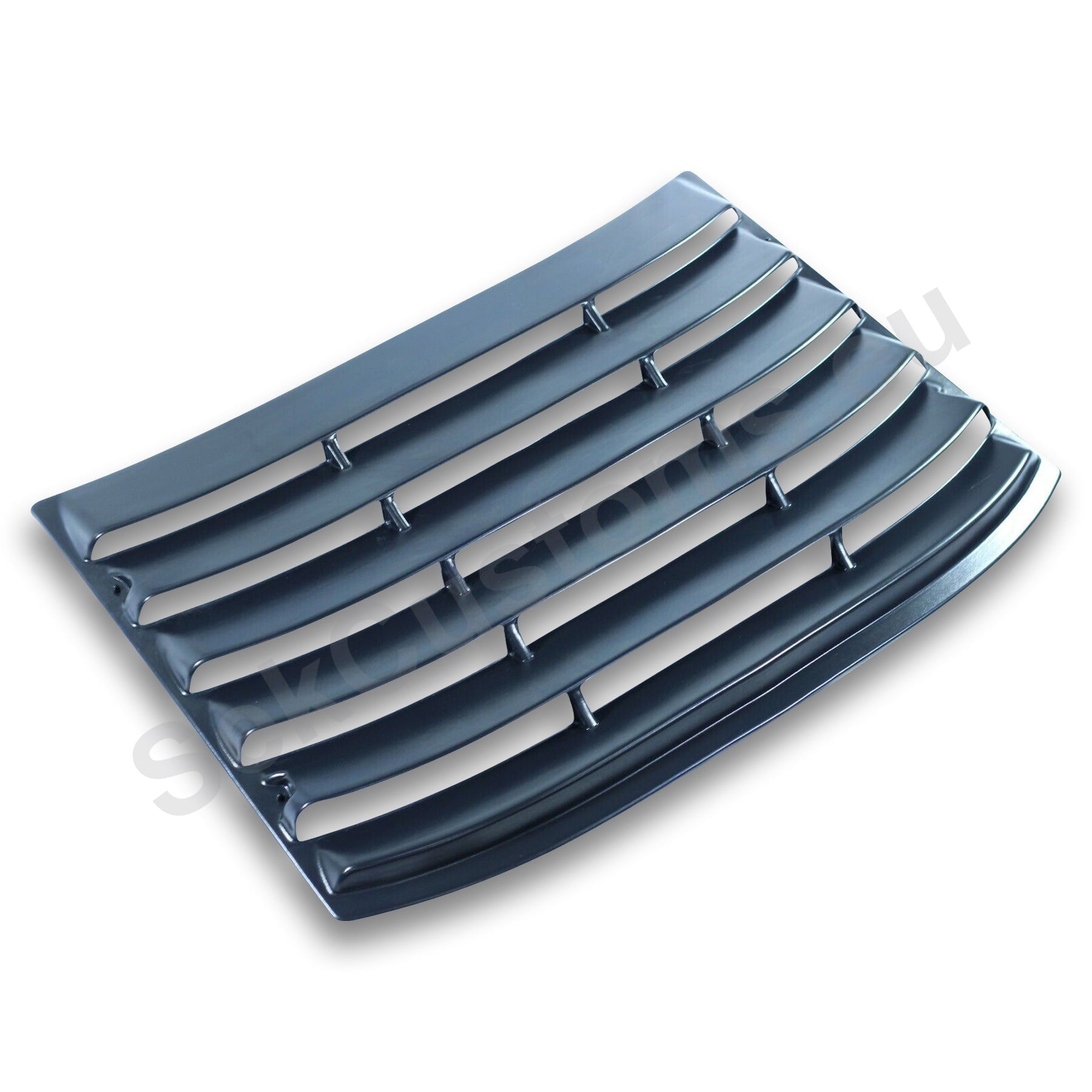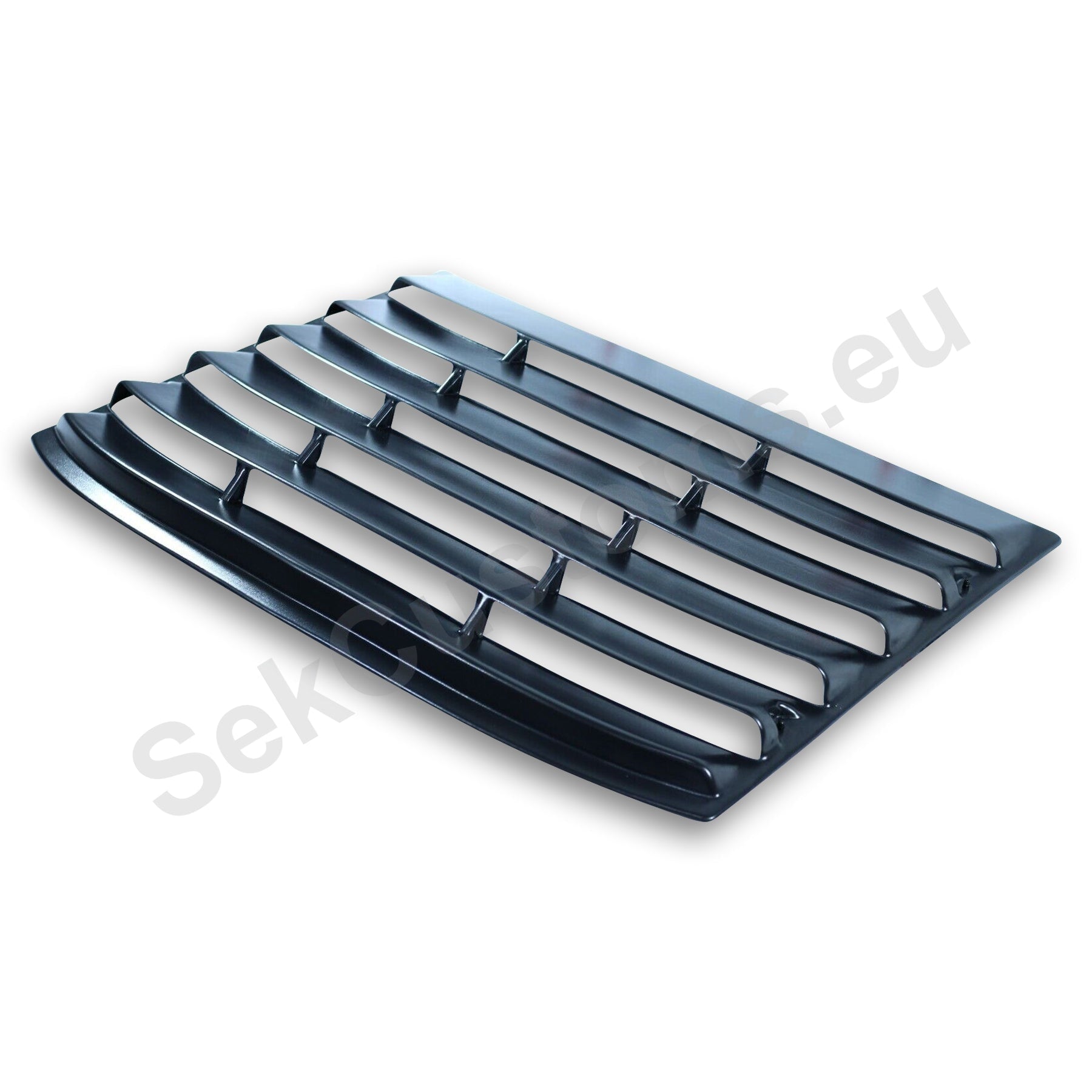 The window grille is precisely shaped to replicate the contours and dimensions of the rear window's edges. The edges of the louver align perfectly with the rubber trim of the window, providing a neat and completed finish. This rear window detail highlights and emphasizes the vehicle's lines.