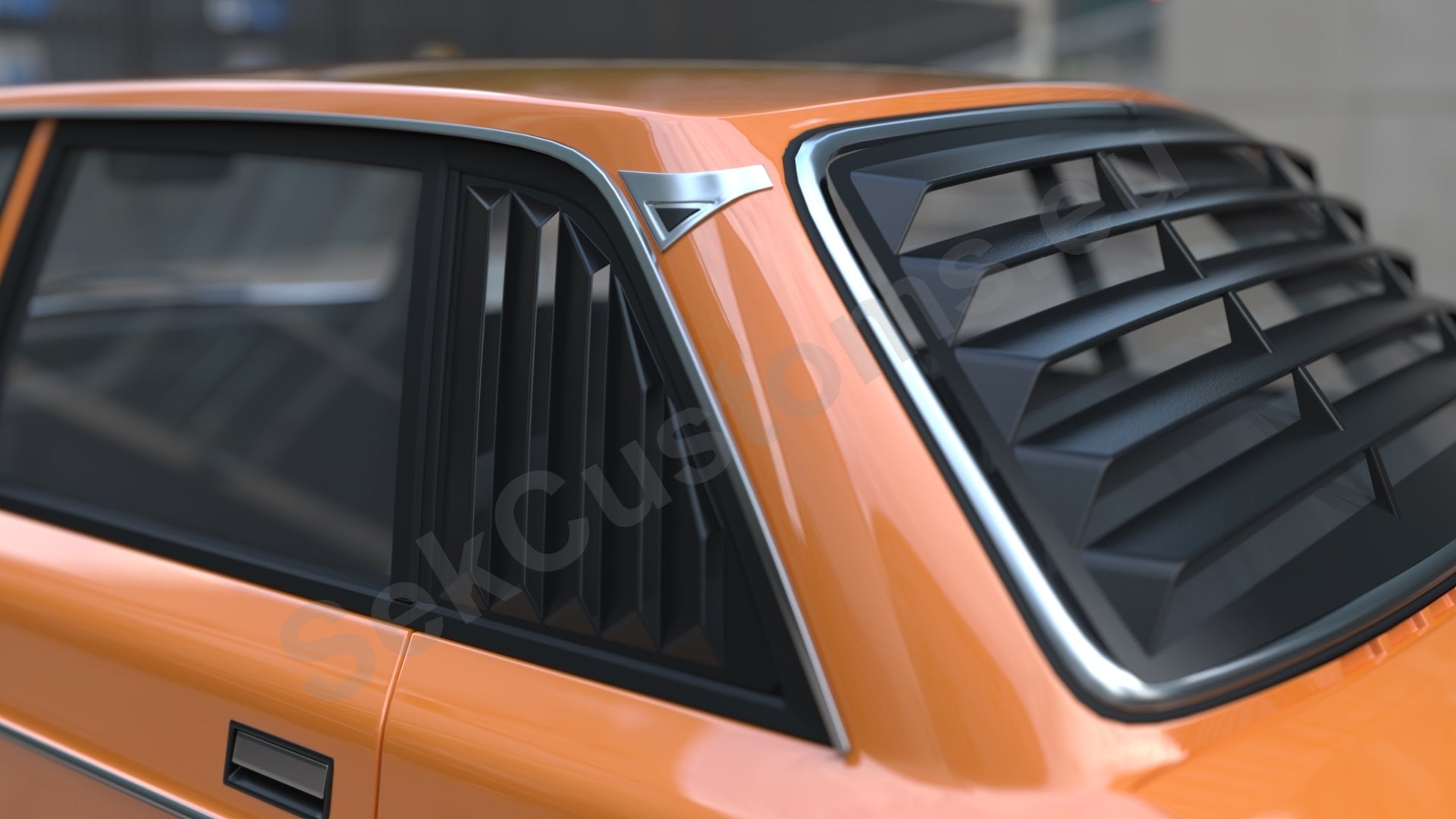 The window grilles is meticulously crafted to match the contours and dimensions of the quarter window's edges. The louvers edges align seamlessly with the window’s rubber trim, delivering a clean, polished finish. This detail enhances and accentuates the vehicle’s design lines.