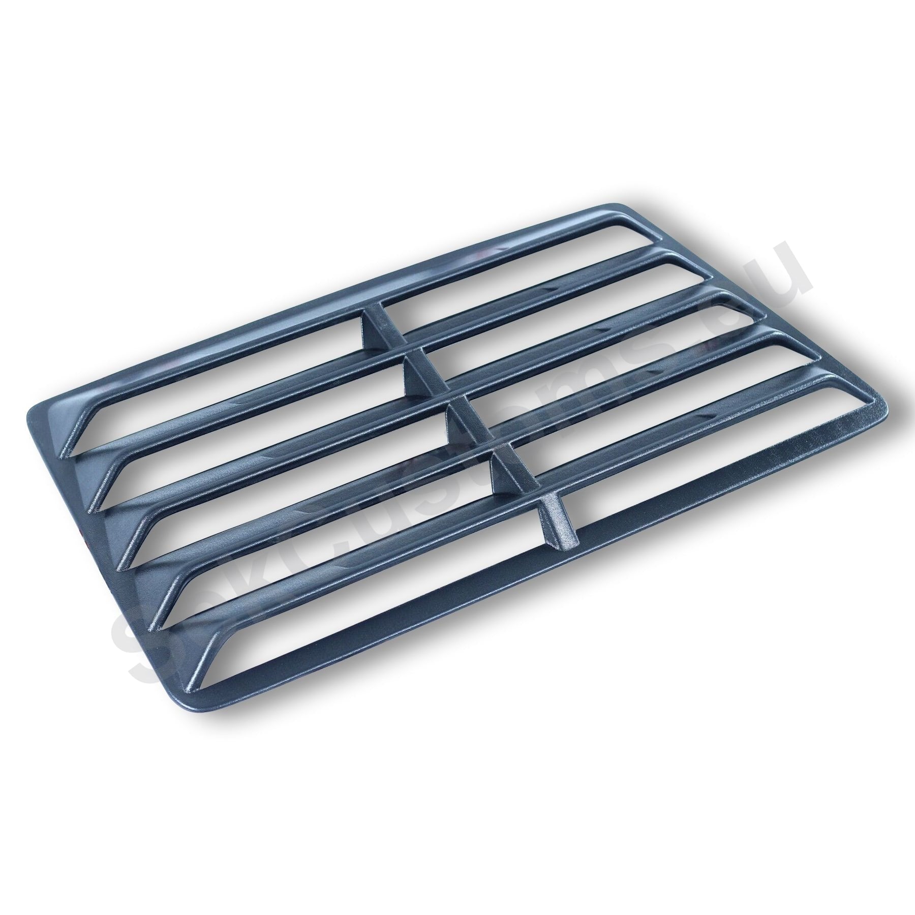 The window grille is precisely shaped to replicate the contours and dimensions of the rear window's edges. The edges of the louver align perfectly with the rubber trim of the window, providing a neat and completed finish. This rear window detail highlights and emphasizes the vehicle's lines.