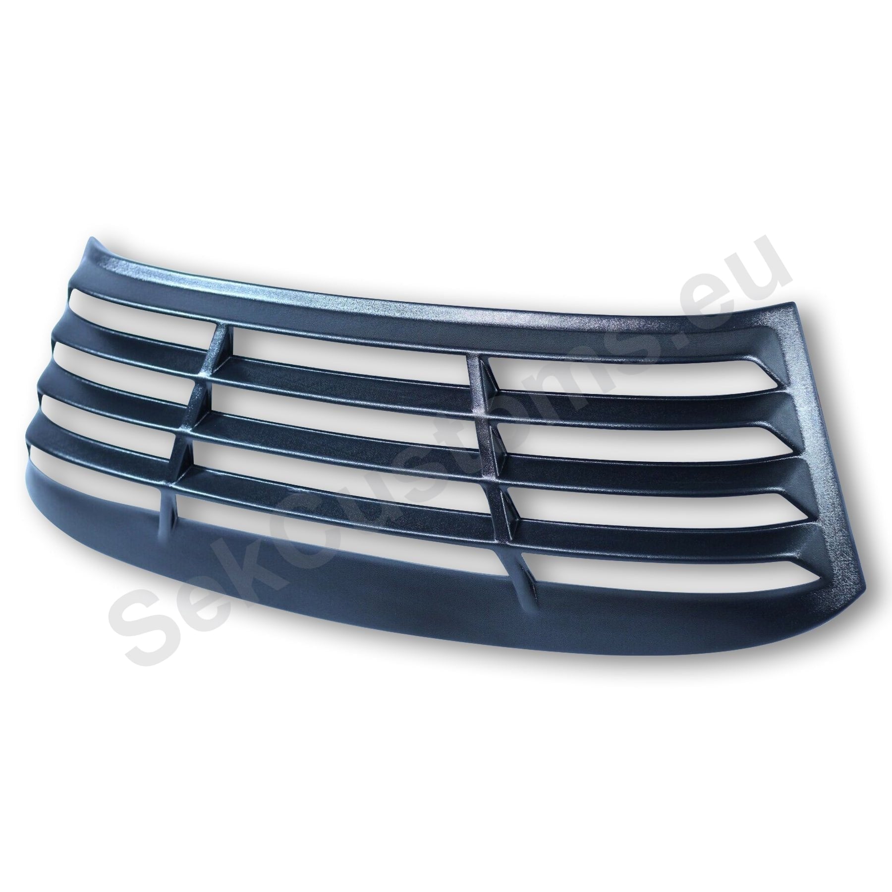 The window grille is precisely shaped to replicate the contours and dimensions of the rear window's edges. The edges of the louver align perfectly with the rubber trim of the window, providing a neat and completed finish. This rear window detail highlights and emphasizes the vehicle's lines.